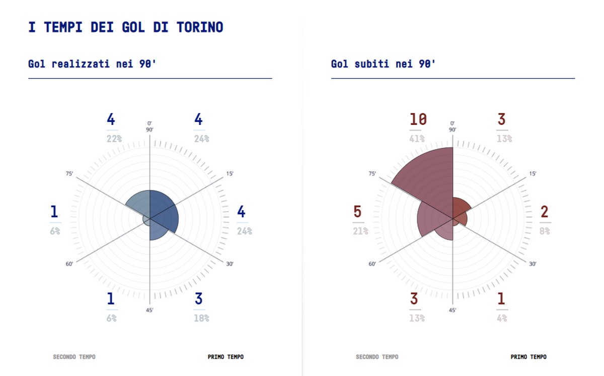 IL DATO - In ipotesi, se le partite durassero soltanto 45', oggi il Torino avrebbe 20 punti e comanderebbe la classifica di Serie A alla pari del Milan. Al contrario però, se si fossero giocati soltanto i secondi tempi, la squadra di Giampaolo sarebbe oggi il fanalino di coda del campionato con solo 2 punti raccolti in dieci giornate; peggio anche di Fiorentina (7) e Crotone (4). Un dato che fa riflettere sulla tenuta atletica e soprattutto mentale della squadra e che assume contorni ancor più incredibili se si va più a fondo, analizzando in quali fasi di partita arrivano i gol fatti e subiti.