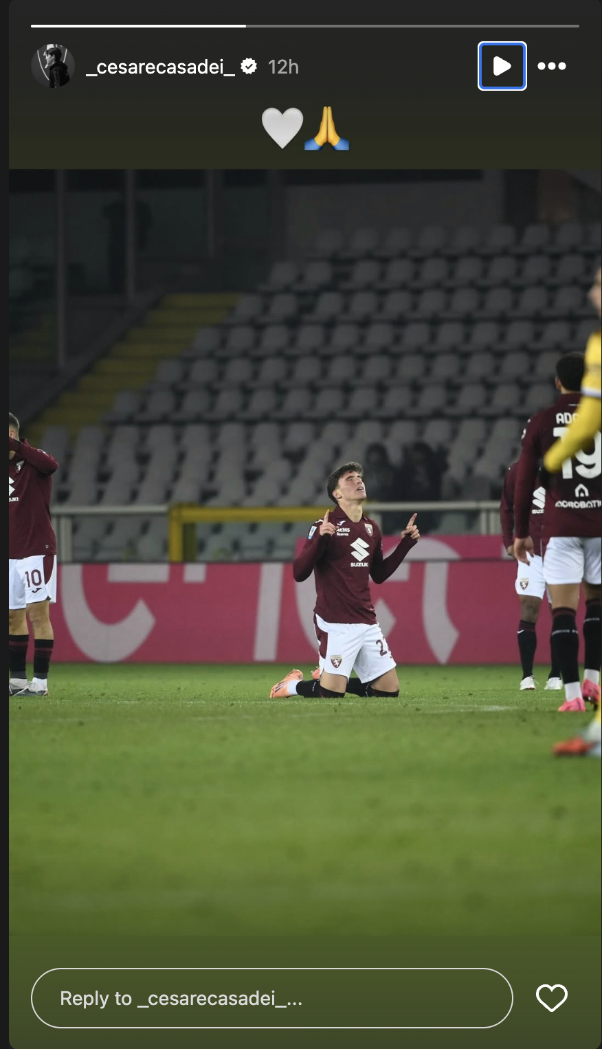 Trovare motivi di ottimismo dopo una sconfitta così non è semplice, ma se una parola è risuonata nelle ultime settimane tra le mura granata, quella è stata “continuità”. Quella continuità che il Toro cerca, ma che fatica a trovare. Ma ecco che, nella partita di ieri, si può individuare una luce, che giustamente viene festeggiata. Casadei sta vivendo un momento positivo, e non solo per i gol delle ultime partite. Il centrocampista si tiene allora stretta la gioia personale della rete dell’1-2, che non basta a portare alla squadra tre punti ma che almeno suggella il suo momento d'oro. Ora l'augurio è di continuare in questa direzione, magari trasportando anche i compagni.