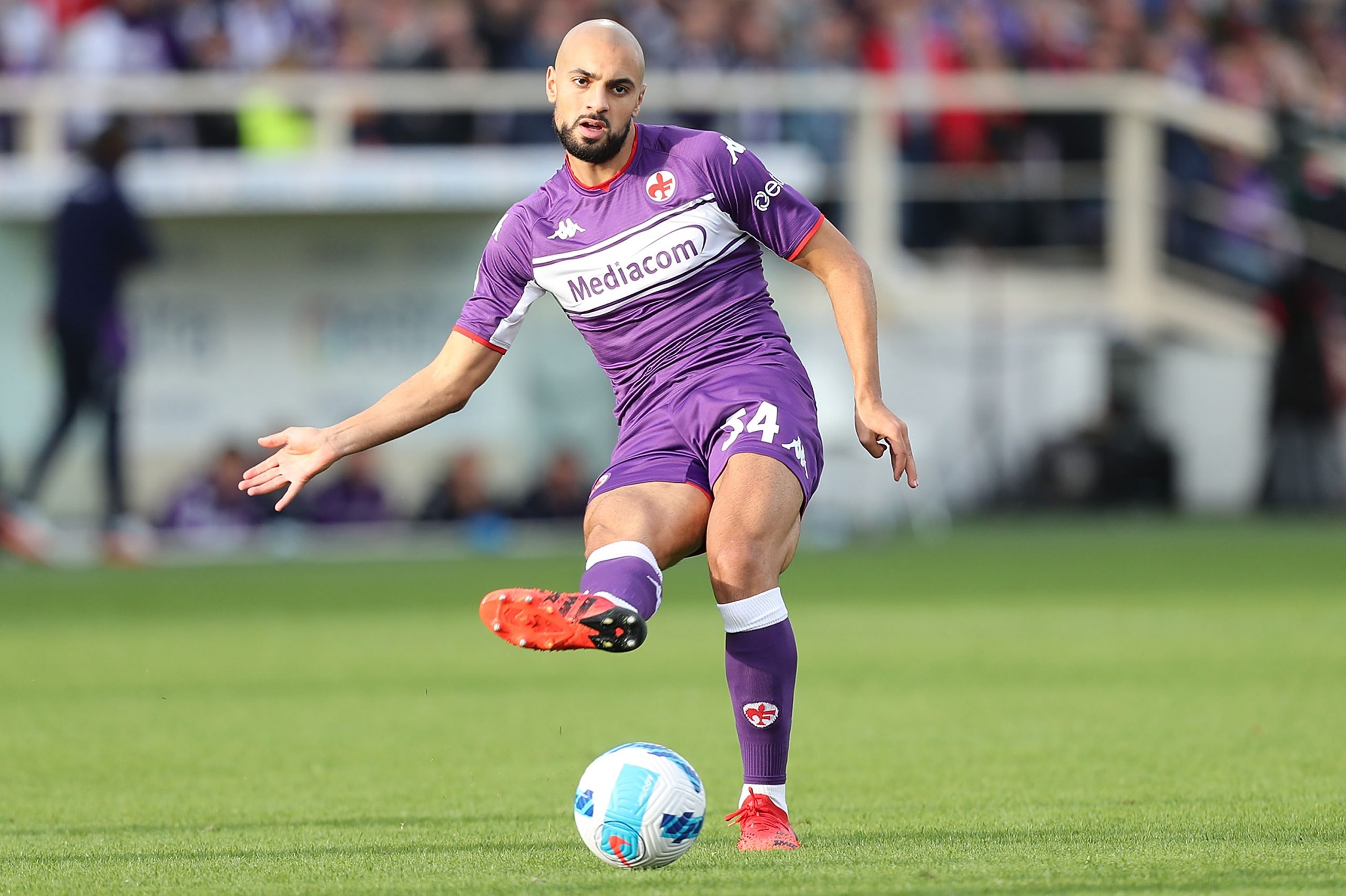 FLORENCE, ITALY - OCTOBER 24: Sofyan Amrabat of ACF Fiorentina in action during the Serie A match between ACF Fiorentina and Cagliari Calcio at Stadio Artemio Franchi on October 24, 2021 in Florence, Italy. (Photo by Gabriele Maltinti/Getty Images)