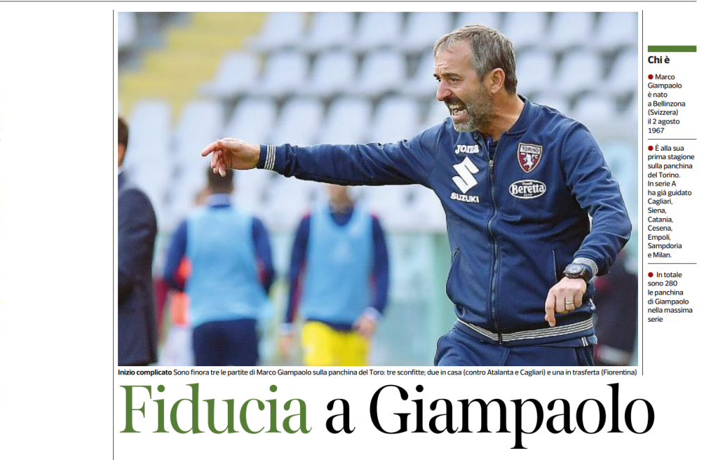 Vigilia di gara per il Toro, che domani sera alle 20.45 sarà ospite del Sassuolo al Mapei Stadium. Il programma di giornata prevede la rifinitura mattutina cui seguiranno il pranzo e la partenza per Reggio Emilia. In mattinata partirà la vendita dei biglietti per la gara di Coppa Italia contro il Lecce, nel pomeriggio sono invece attese le parole di Marco Giampaolo.