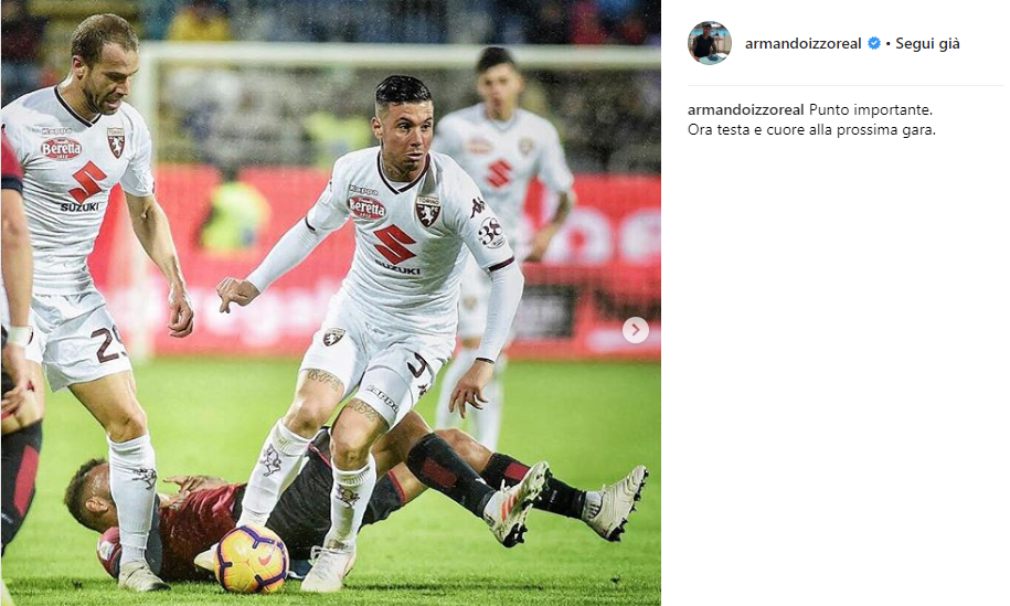 Ha condiviso i propri pensieri sui social anche Armando Izzo: "Punto importante. Ora testa e cuore alla prossima gara". Alcuni tifosi, nei commenti, hanno però notare al difensore napoletano che per quanto fatto in campo in molti è più forte il rammarico di aver lasciato due punti che la consolazione di averne preso uno. Allora Izzo comprende e si corregge, cancellando la prima parte del post.
