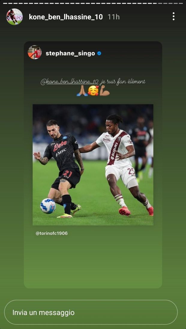 Nella sconfitta di ieri al Diego Armando Maradona contro il Napoli, Ben Kone ha fatto il suo esordio in Serie A. Il centrocampista classe 2000, protagonista con la Primavera di Coppitelli ed in prestito al Cosenza (Serie B) nelle ultime due stagioni, ha sostituito Mandragora nel primo tempo. Diversi i messaggi ricevuti da parte di amici, ex compagni e attuali compagni di squadra per complimentarsi con l'ivoriano. Uno tra tutti è quello di Wilfried Singo, connazionale e coetaneo di Kone. I due avevano già giocato insieme nella Primavera del Torino.