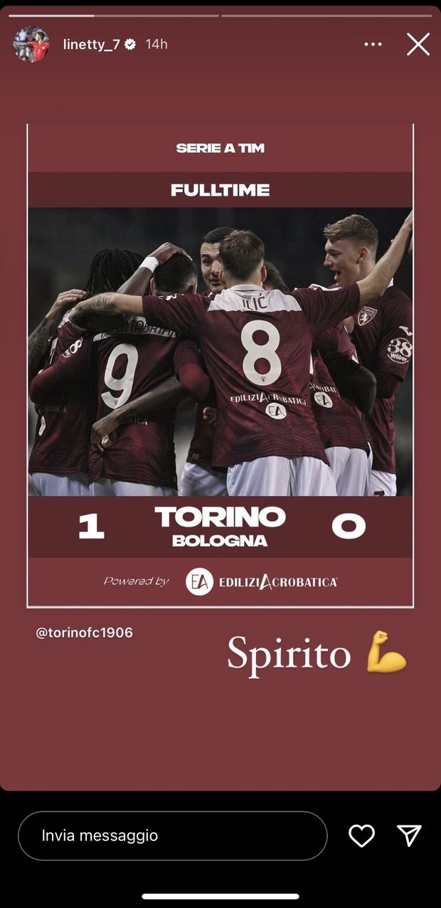 Tanti complimenti da parte dei tifosi per Karol Linetty: il polacco ha conquistato una buona prestazione per tutta la partita, e per festeggiare la vittoria ha pubblicato una storia su instagram, affiancata dalla scritta “spirito”, ad indicare la compattezza e la mentalità del gruppo.