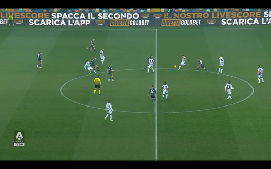 L'azione del secondo gol bianconero nasce invece da un contrasto aereo vinto da Jajalo su Brekalo (Immagine 1). L'uomo in meno a centrocampo probabilmente è stato decisivo perché i centimetri di Mandragora avrebbero fatto la differenza in questa situazione.
