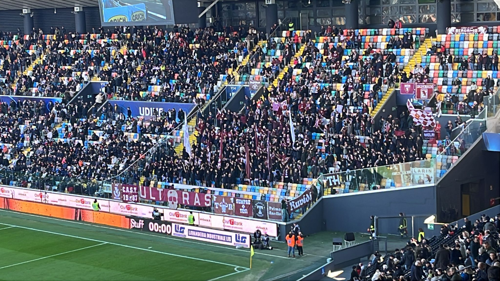 12.17 - Molti i tifosi granata presenti nel settore ospiti.
