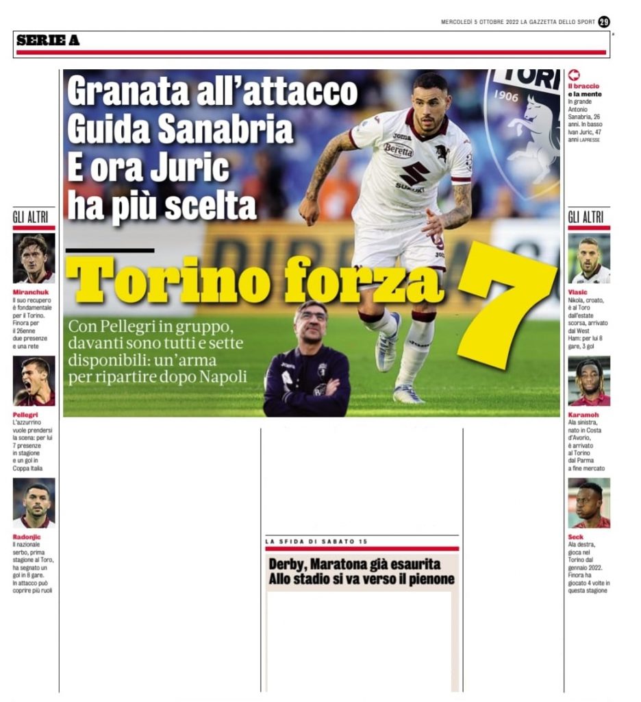 Video - Rassegna Stampa TN del 05/10/2022: "Torino forza 7"