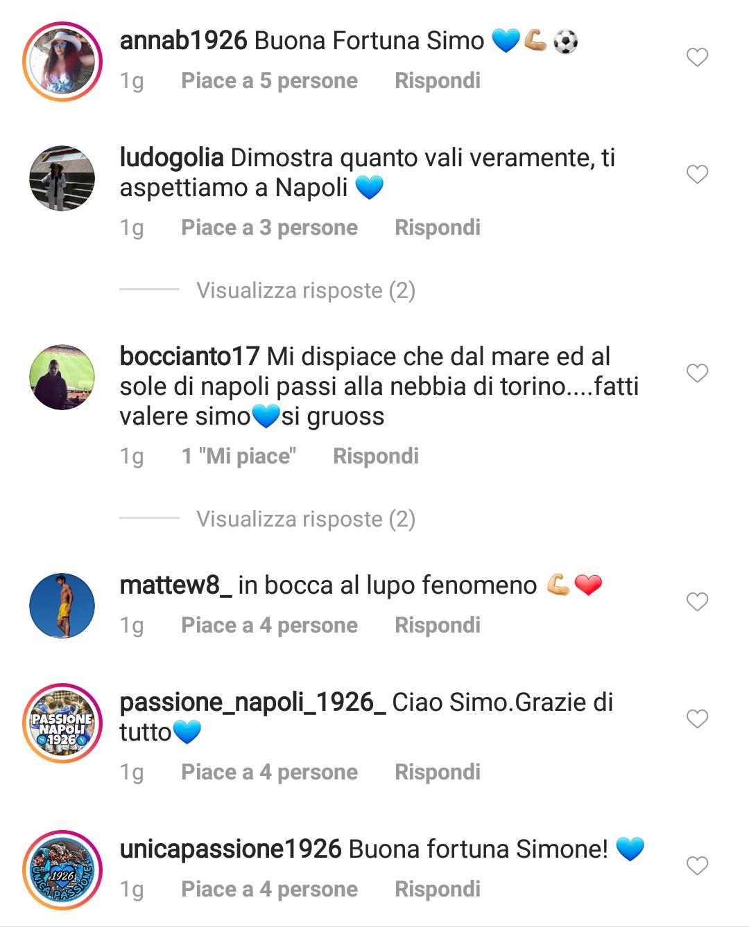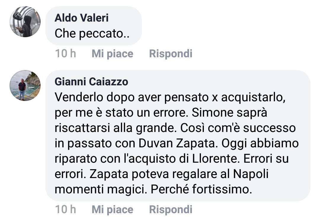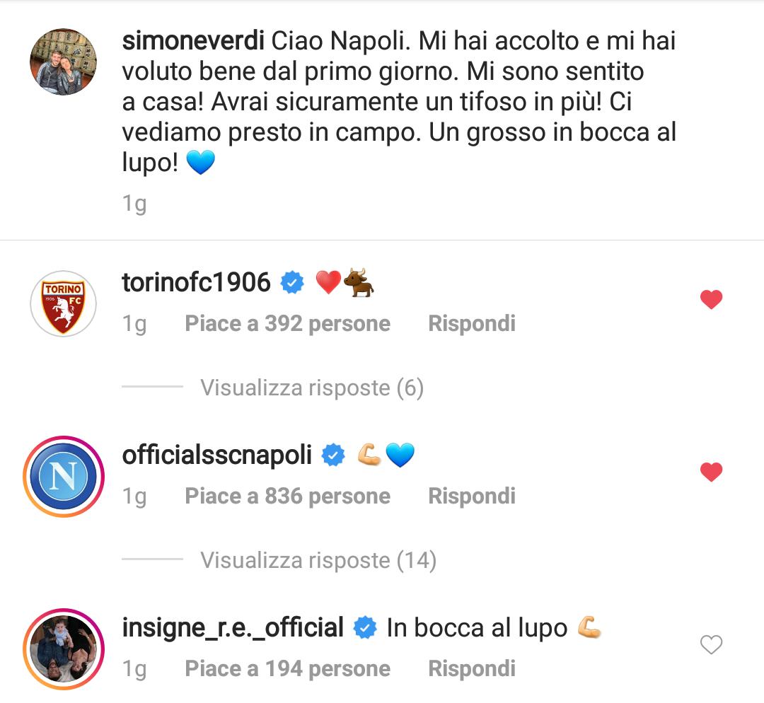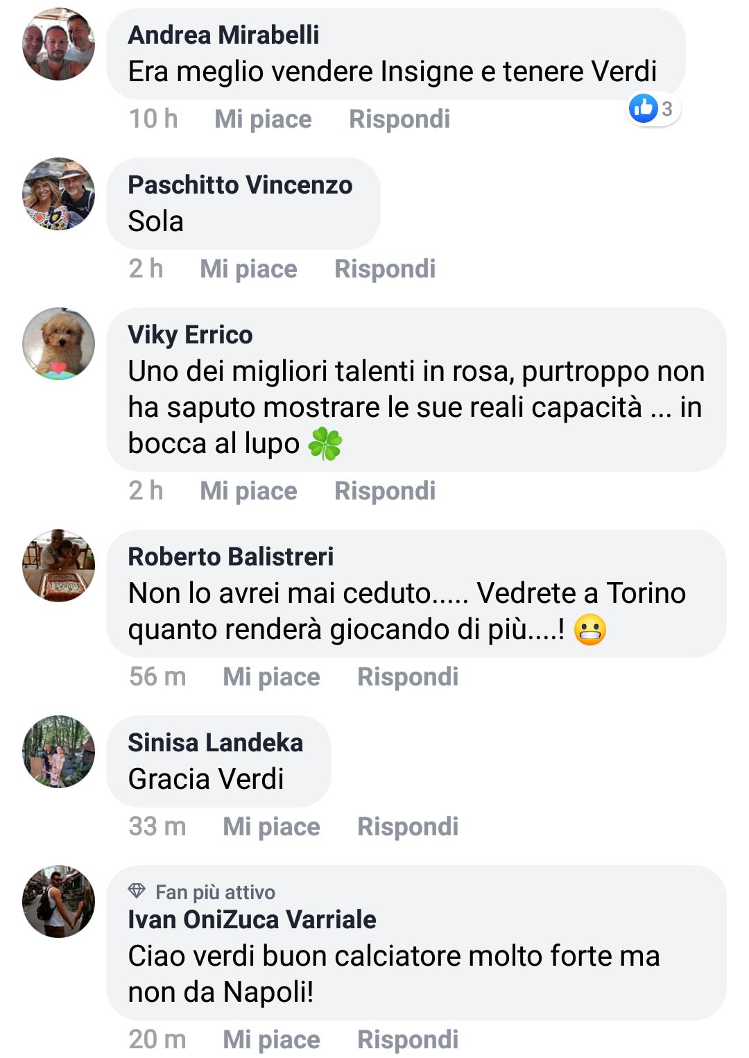 Una selezione delle opinioni dei tifosi partenopei, raccolte sotto i post su Facebook ed Instagram ed i tweet su Twitter degli account ufficiali di Napoli e Verdi:
