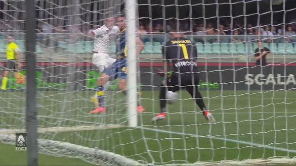 Infine nell'immagine 5 viene immortalato il momento in cui il centravanti ex Genoa e Milan calcia con forza in mezzo alle gambe di Montipò che non ha il tempo per reagire e parare la sua potente conclusione. La palla passa in mezzo alle gambe del portiere gialloblù e poi sbatte su entrambi i pali prima di scivolare oltre alla linea per il gol dell'1-2 che pone la parola fine su questo match per la gioia dei marcatori Savva, Pellegri e di tutto il resto della formazione granata.