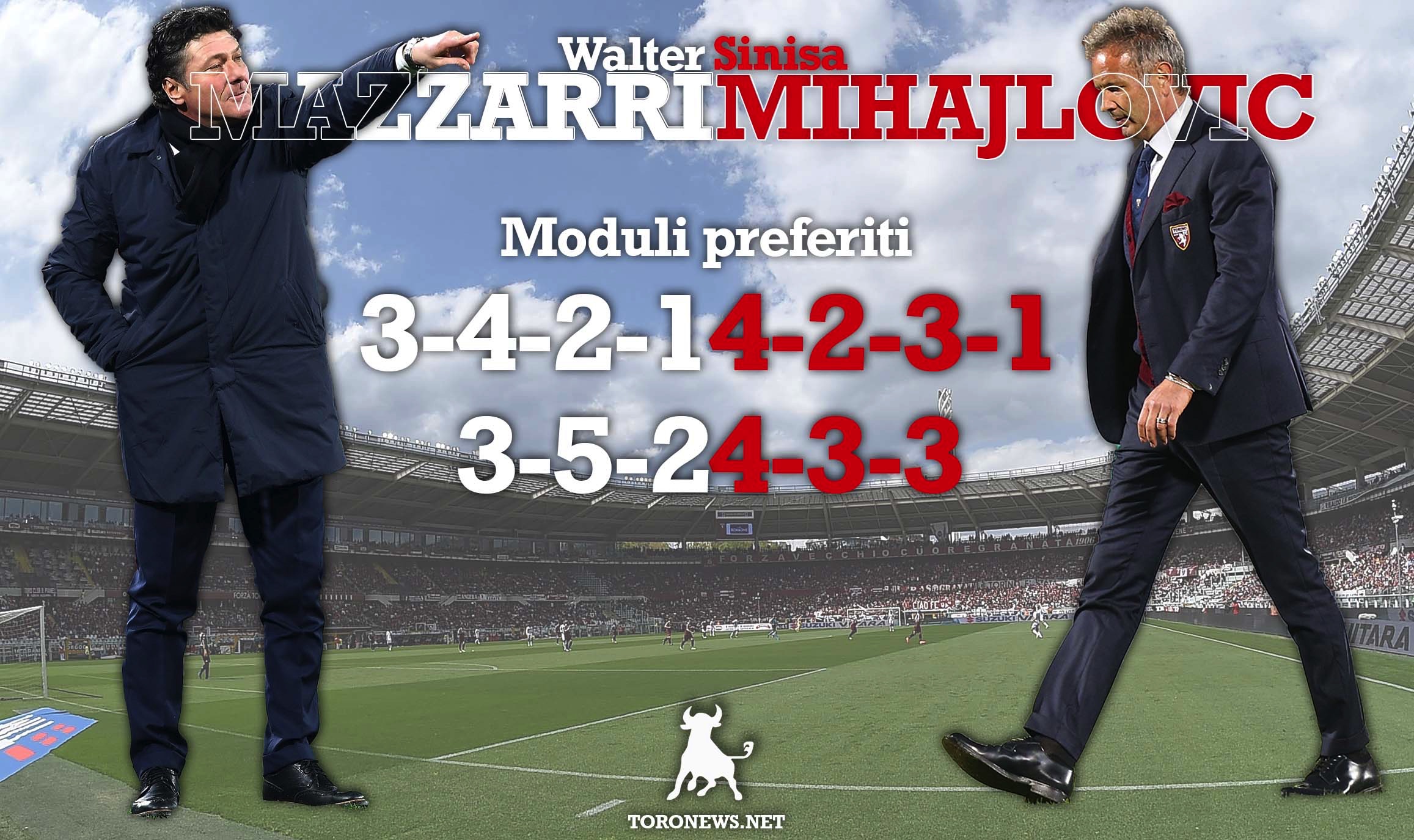 Rimaniamo sempre sui numeri, ma questa volta non sulle statistiche. Quali sono i moduli preferiti dai due allenatori? Il 3-5-2 (con la variante del 3-4-2-1, brevettata a Napoli e riproposta a Torino) è un marchio di fabbrica di Walter Mazzarri, mentre Mihajlovic predilige la difesa a 4 e in carriera ha quasi sempre adottato il 4-3-3 e il 4-2-3-1. Sia nell'esperienza granata che in quella attuale a Bologna, l'ex allenatore del Toro ha plasmato le proprie squadre su questi due sistemi, alternandoli poi in base alle esigenze: due filosofie completamente differenti.