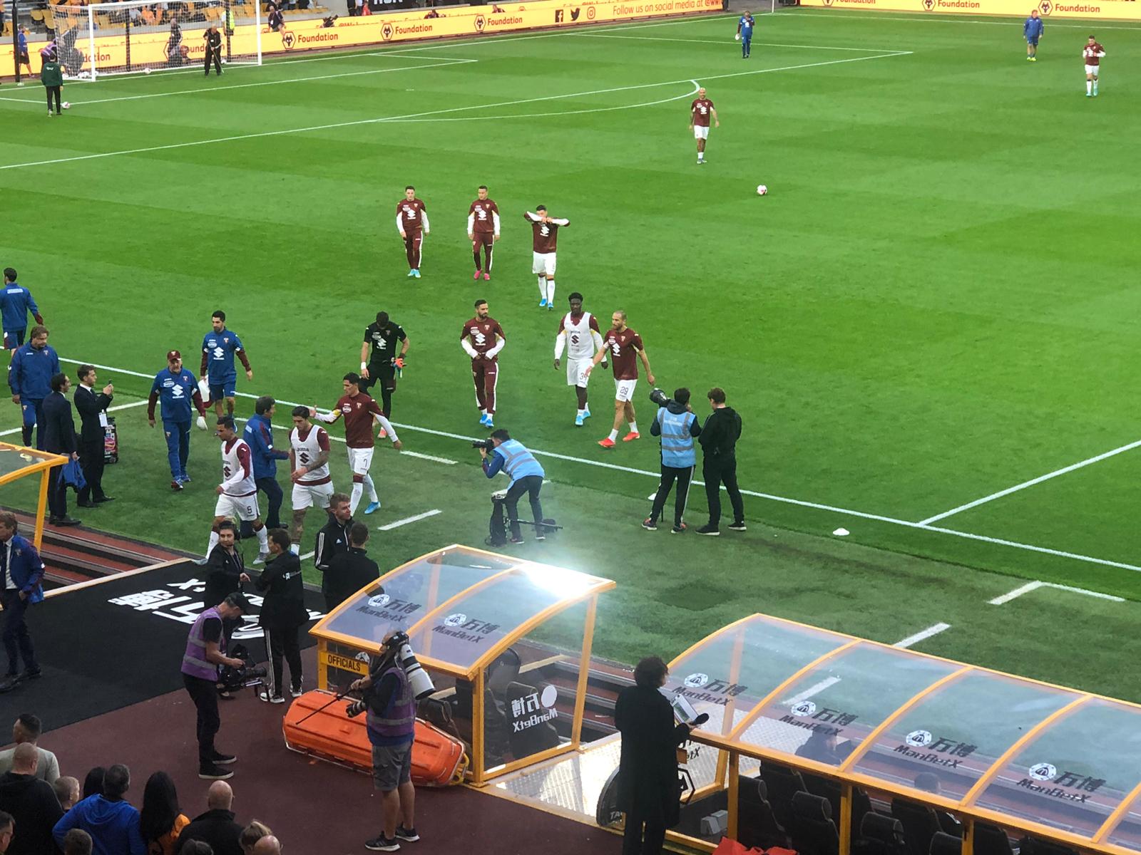 20.31 - Termina il riscaldamento del Torino, i giocatori si stanno dirigendo negli spogliatoi.