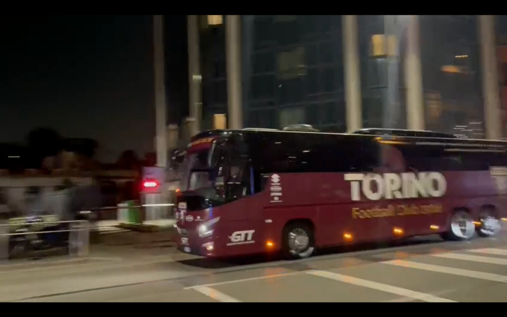 Le immagini dell'arrivo allo stadio Giuseppe Meazza in San Siro del pullman con i giocatori del Torino