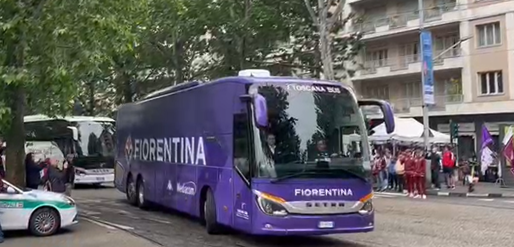 Le immagini dell'arrivo allo stadio Olimpico del pullman della Fiorentina per la partita odierna contro il Torino
